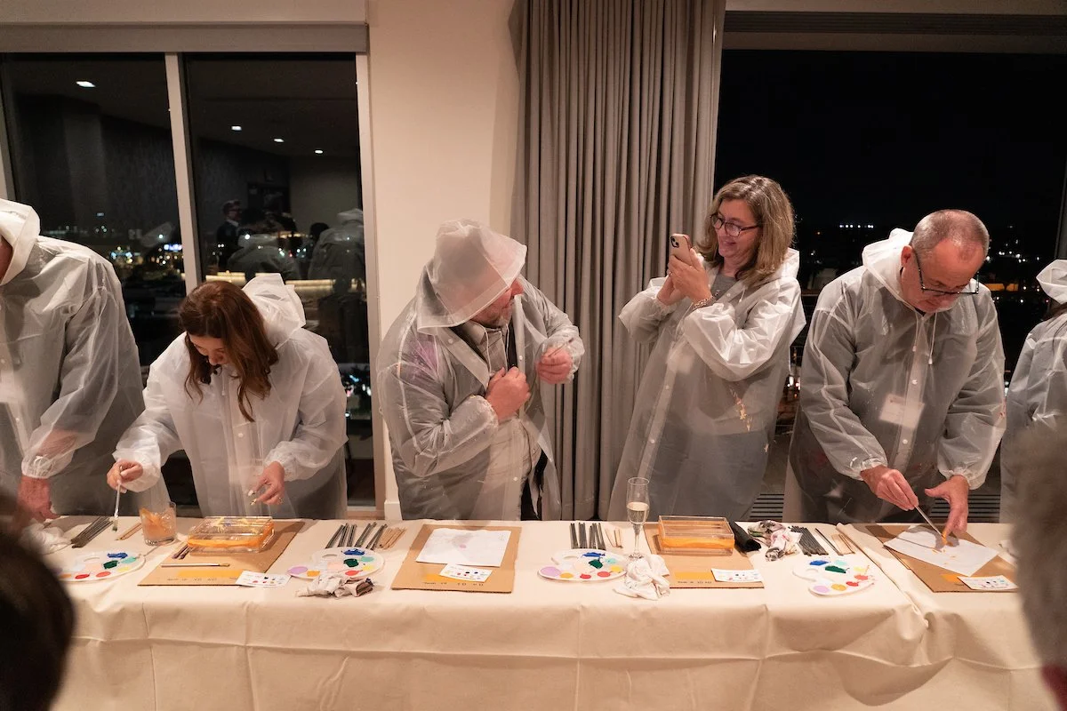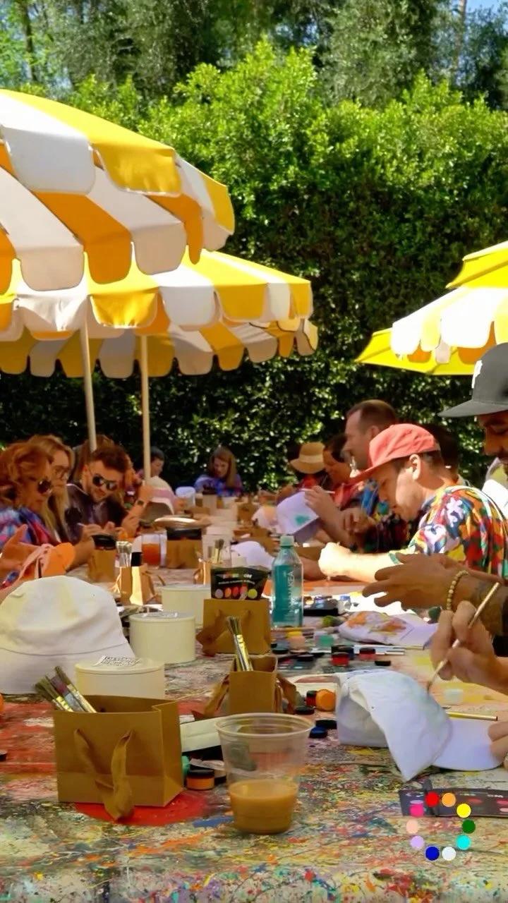 Welcome reception for the 34th Annual Palm Springs International Film Festival in collaboration with Visit Palm Springs and Palm Springs Convention Center. Guests paint splattered clutches and pocket squares to wear at the opening gala and awards ceremony.