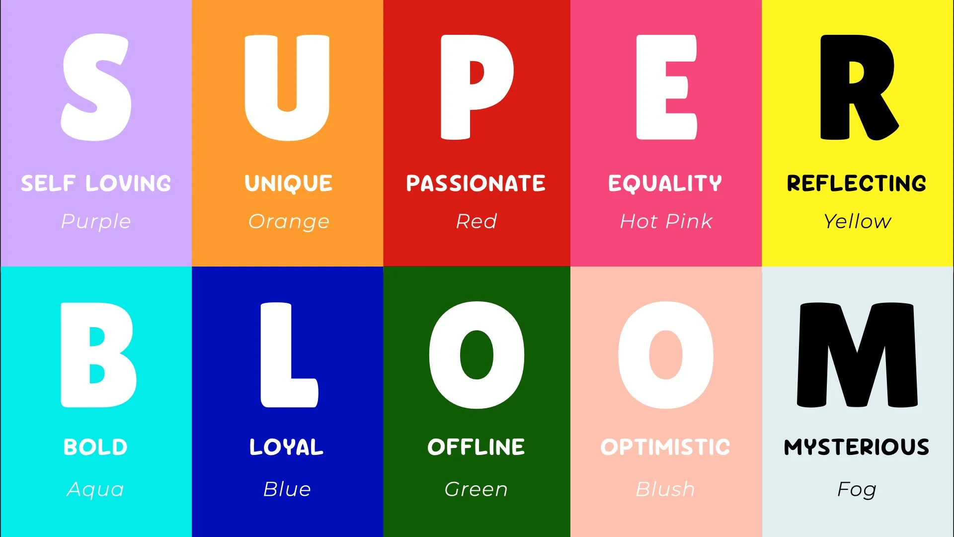 Each paint is named after a letter in SUPERBLOOM, with a corresponding hue and meaning